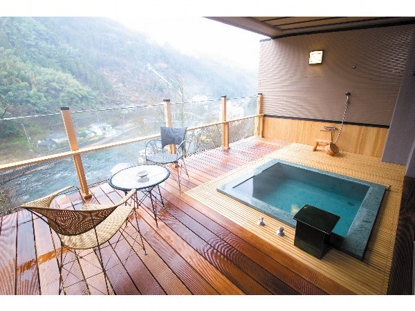 - 別邸、獨棟私人房都有溫泉露天風呂和室內浴池(按摩浴缸),可以看到響溪谷的絕美景色。